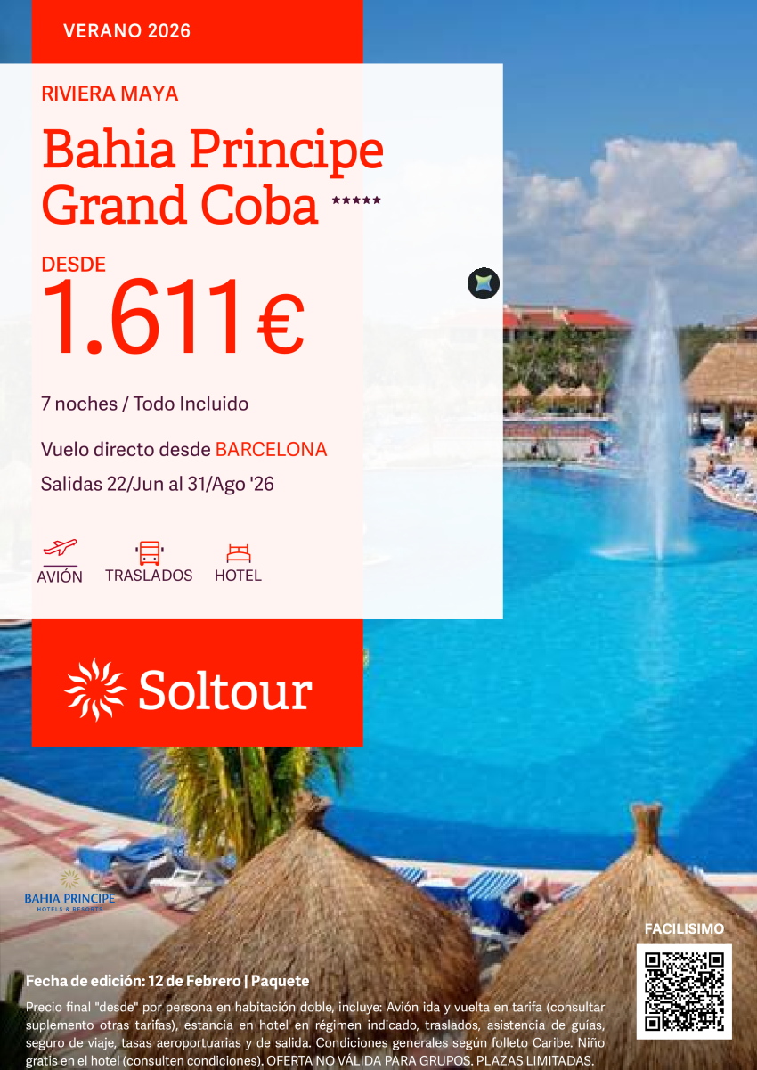 Riviera Maya (México) en Bahia Principe Grand Coba desde 1.611€, salidas del 22 Junio al 31 Agosto desde Barcelona