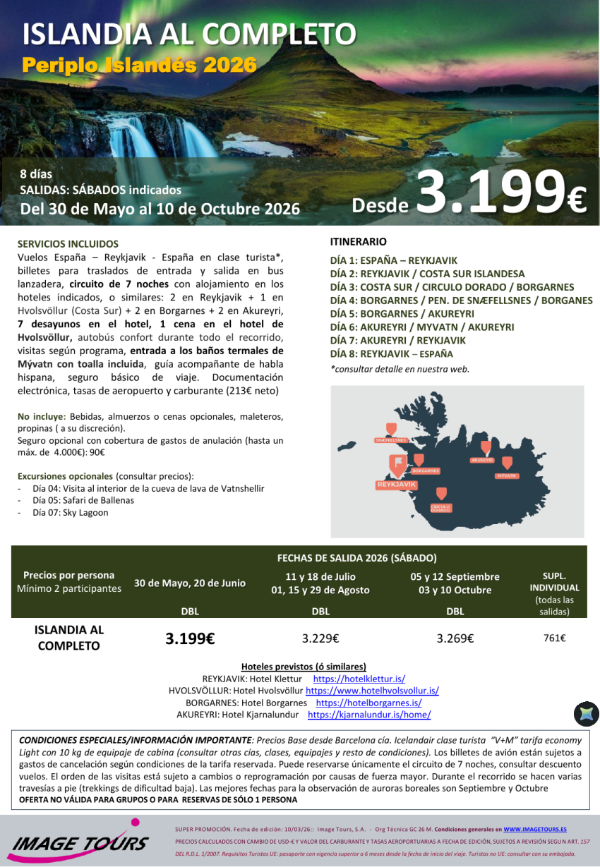 ISLANDIA al completo 8s: Reykjavik, Costa sur, Círculo dorado, Peninsula de Snæfellsnes, Akureyr, Myvatn